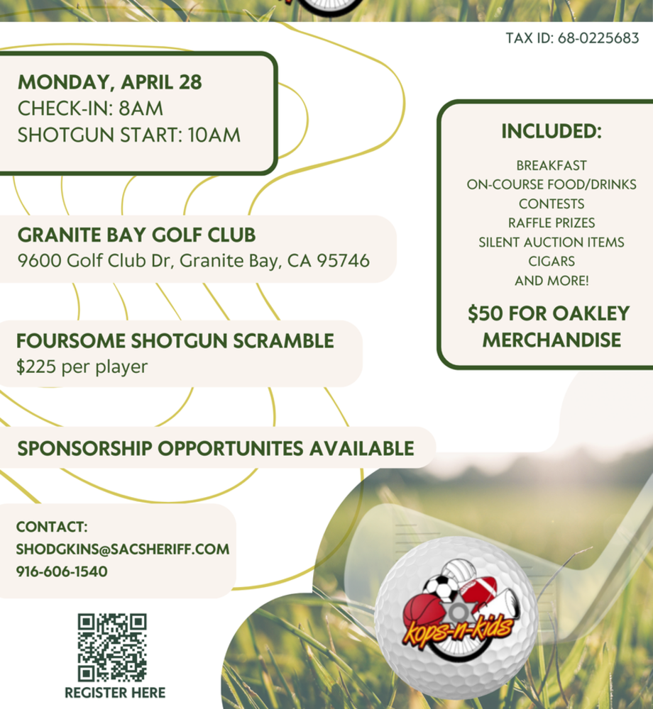Also, consider becoming an event sponsor and helping to support the amazing work done by Kops-n-Kids in the Sacramento community. Go to our sponsor/donate tab to view details.